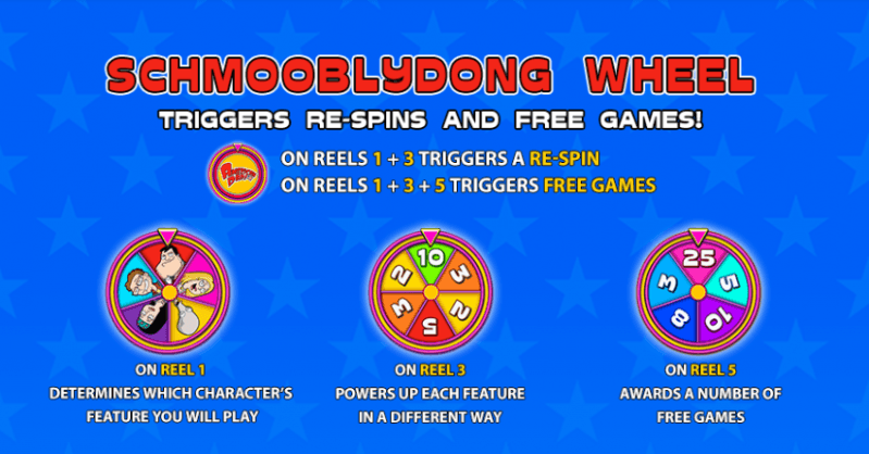 Roger is the wild card, which occurs more often during the special features adding more wilds to the reels. The game logo is the scatter that also appears within the special rounds. Last but not least is the Schmooblydong wheel, which triggers each of the features when it hit the reels one, three, and five.