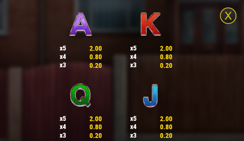 - Win between 3x to 0.30x the line stake for full lines of card icons from Ace to Jack.