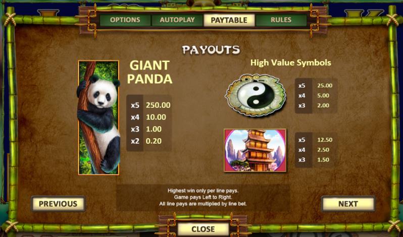 - Win up to 25x the line stake for a symbol of a giant panda that comes stacked.