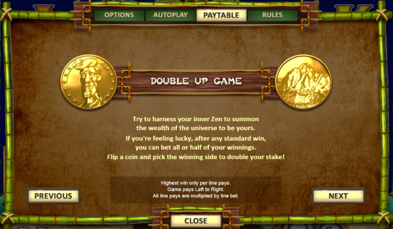 - A five-of-a-kind combination of a yin-yang symbol pays significantly less - no more than 2.50x the line stake at a lowest bid per spin.