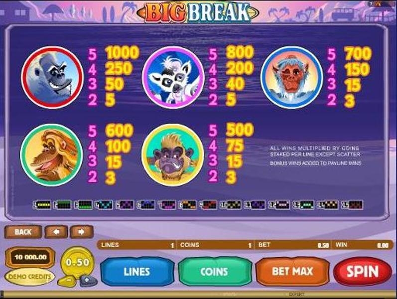 - There’s a little more to Big Break than just a selection of well-paying main game prizes, however. Firstly, you’ve got an awesome Free Spins game to trigger, and this is unveiled when three or more of the Munky Wax scatter symbol appear on your reels.