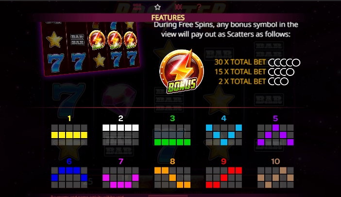 Booster was released on the 26th of June 2017 by the popular software manufacturer. iSoftBet has been in the industry since 2010, boasting licensing in the United Kingdom and Alderney. It is also certified in Spain and Portugal. The studio has an impressive portfolio with games of different types, but the biggest number of items are video slots. For example, you can enjoy such titles as Neon Reels and Rambo.
