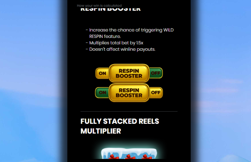 When the free spins are launched, five are granted initially, and the dog symbol may increase that number by five more. In free spins, Santa’s Bag Bonus will be somewhat altered. Wild multipliers will be 3x and 4x. Regular multipliers will reach 3x and 5x. There will be two additional Wild transformations instead of one, and a Hi, Baby mechanism will expand the Wild card to cover the entire second reel.
