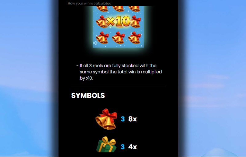 - Payouts for the sock filled with gifts reach up to 30x the win line for a three-of-a-kind combination.