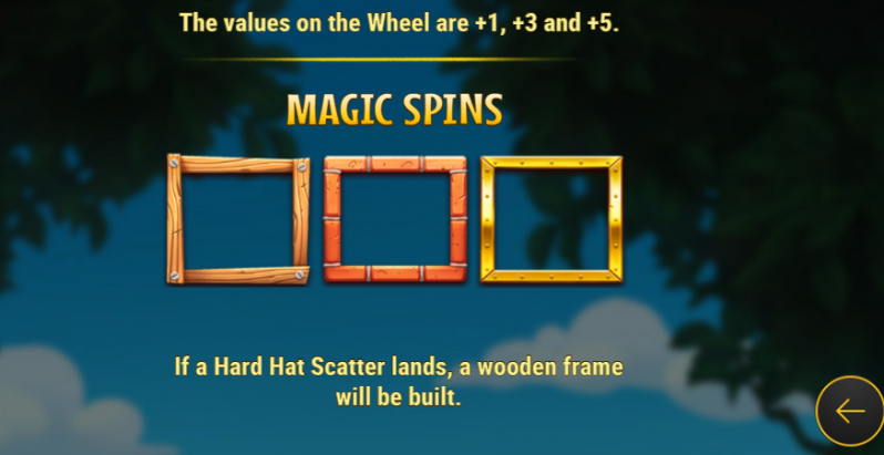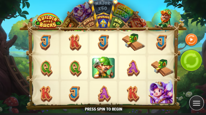 Buildin More Bucks transports you to a lush woodland realm where the reels sit among whispering trees, twinkling lights, and bubbling streams. Instead of hammers and helmets, sprites carry glowing wands and vines that sprout into magical frames. It feels like an enchanted workshop where nature and magic work together: