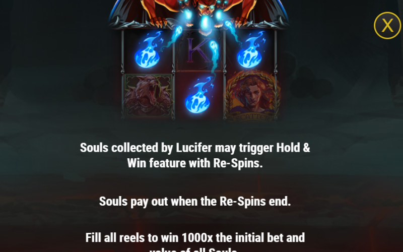 Reels lock, respins ignite, and captured souls stick in place. Fill the grid, and a divine 1,000× bonus unlocks—plus all soul values. It’s the grand arcane ritual, the climactic spell of the game.