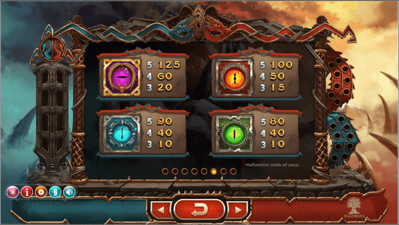 Pink Dragon Eye is the highest paying symbol, which gives up to 125x if you land five on the reels.