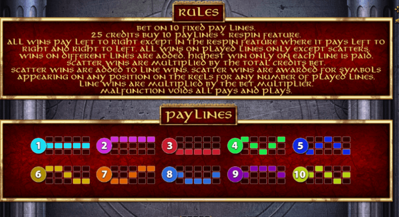Based on the title, you probably expect a dragon. While there is not one in this game, the dragon lady is featured with helmet and weapons to battle those mysterious creatures. The music, bright graphics, and brilliant colors are made to appeal to fans of the fantasy world. The design is built on the contrast of a draconian dark red drum with a golden frame and a background in the form of an interior of a knight’s castle.