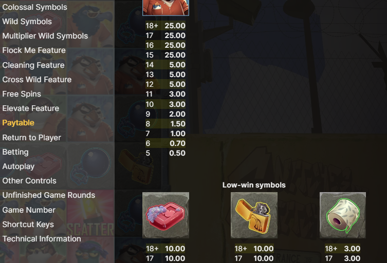 What sets this slot apart is its commitment to a quirky, darkly comedic aesthetic. Instead of a lighthearted bird sanctuary, players find themselves in a concrete prison block topped with chain-link fencing and barbed wire. The bird inmates puff their chests, the warden watches from the shadows, and the atmosphere hums with clinks, mutters, and distant wing-beats.