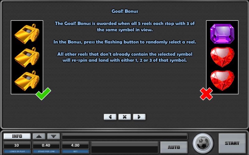 Although there are no Wild or Scatter symbols in this game, Goal! does have a special Bonus Feature.