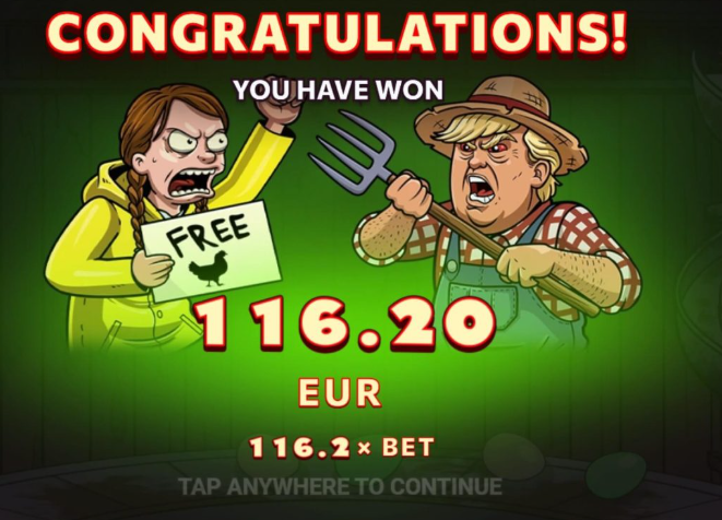 Basic reel spinning here is complemented with a bonus gambling round. After any win, tap on the double-up button and pick between a bunny or a chicken to get twice the amount. In case the choice is correct, you can have up to four more tries. This may lead to some solid payouts.
