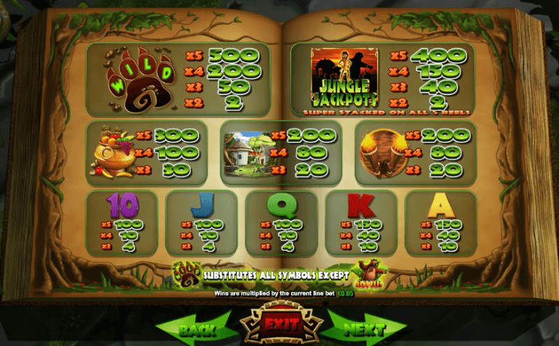 This grid consists of five reels, three rows, and twenty fixed win lines. Start spinning at the lowest bid of 0.20 cents per spin, or raise the stakes to 500 credits if you are in it for the jackpot prize. Each rotation will contribute a certain percentage of the payment to the Jackpot King accumulator, and hopefully you will collect enough of royal jewelry to eventually enter the jackpot round. The RTP of Jungle Jackpots Mowgli’s Wild Adventure is 95.63%.