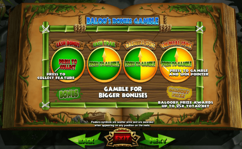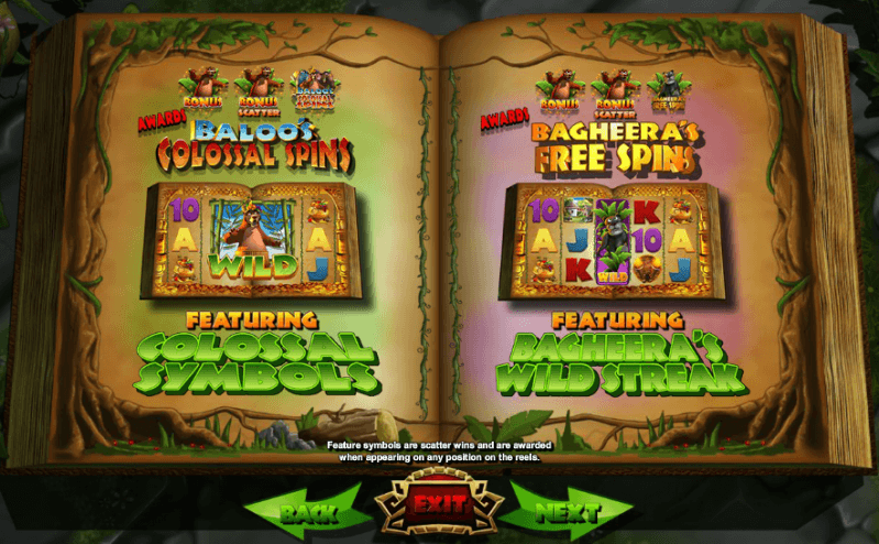 Baloo’s Cash Bonus may reward with up to 500x the total bet, while Baloo’s Colossal Spins result in rotations with a massive 3x3 icon occupying the second, third, and fourth reels. As to Bagheera the panther, she is in charge of triggering free spins with the Wild Streak.