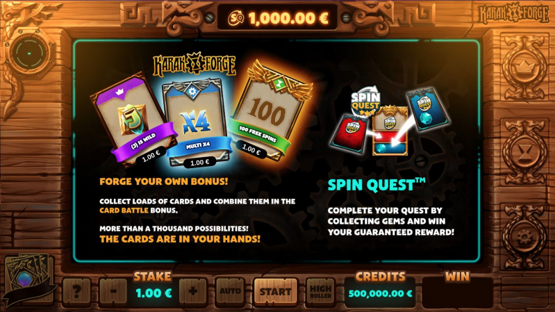 Karak Forge slot machine welcomes everyone to an underground fantasy world. Wander the streets of dwarf kingdom, visit local taverns and listen to the legends of Karak Forge - a dwarf that knows how to score up to 1,000 bonuses on the reels of this game. These are available due to the software’s unique Card Battle technology. The game also offers an original Spin Quest™ with cash wins. Head into our publication below to discover everything there is to know about the title’s pros and cons, see links to certified online operators to play at, and explore games on the similar topic, but from other manufacturers.