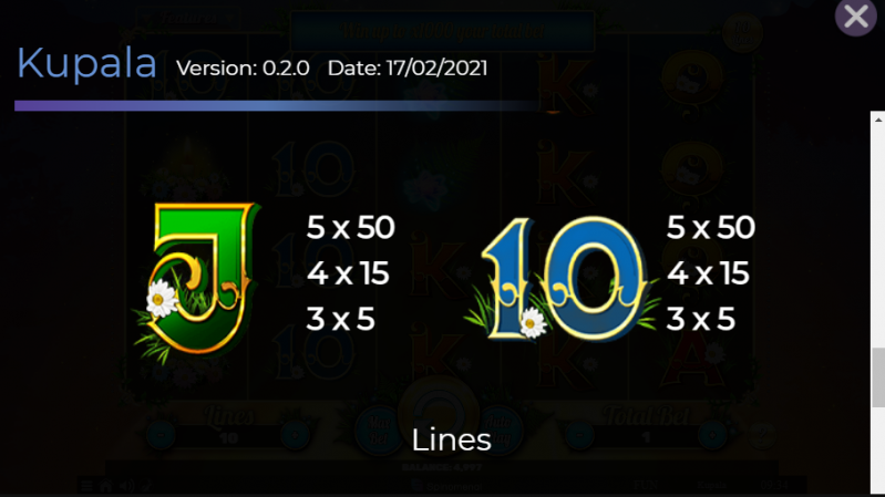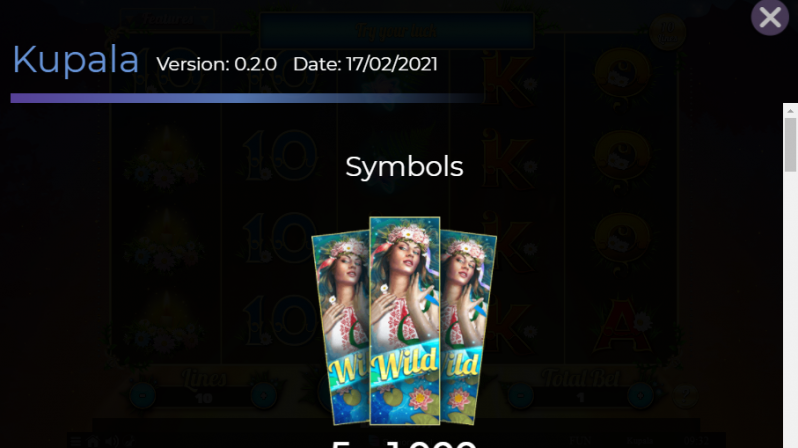 Although it is not very common for a modern slot to have no bonus rounds, Kupala is one of such releases. Thus, you can only enjoy Wild that increases the frequency of wins and Scatters that pay in any direction regardless of their place on the reels.
