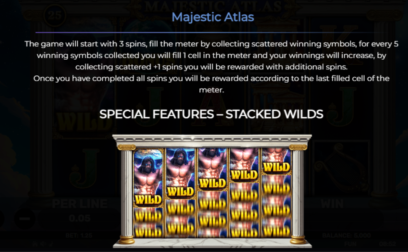 Among marble pillars and rolling clouds, where gods cast judgment from gilded thrones, Majestic Atlas by Spinomenal stands as a mighty tribute to one of Greece’s most powerful and tragic figures. Atlas, condemned to bear the heavens, now offers you a chance to share in his myth — not through suffering, but through glory and fortune. This slot transforms the ancient legend into an immersive, reward-laden odyssey, where each spin echoes with thunder and divine fate.
