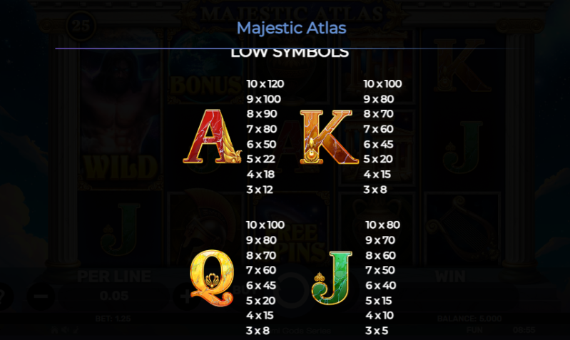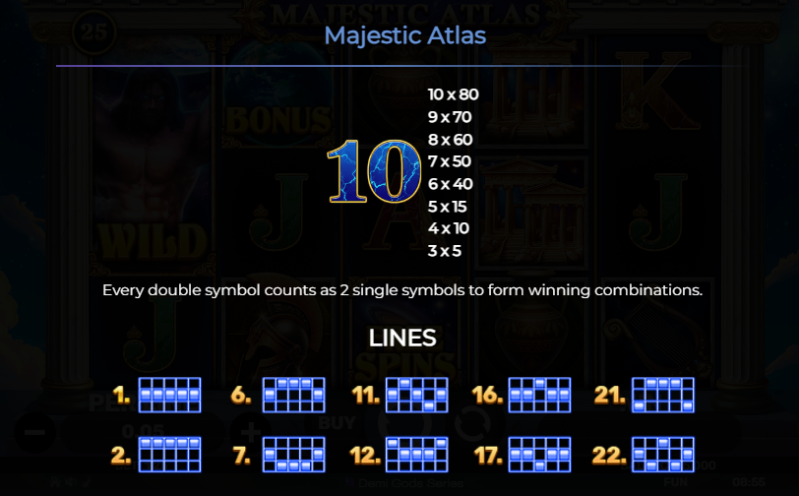 These symbols embody Greek heroism and divine legacy, offering some of the highest rewards in the slot. And the twist? Double symbols, representing Atlas’ eternal burden, count as two — doubling your mythic momentum and your winning power.