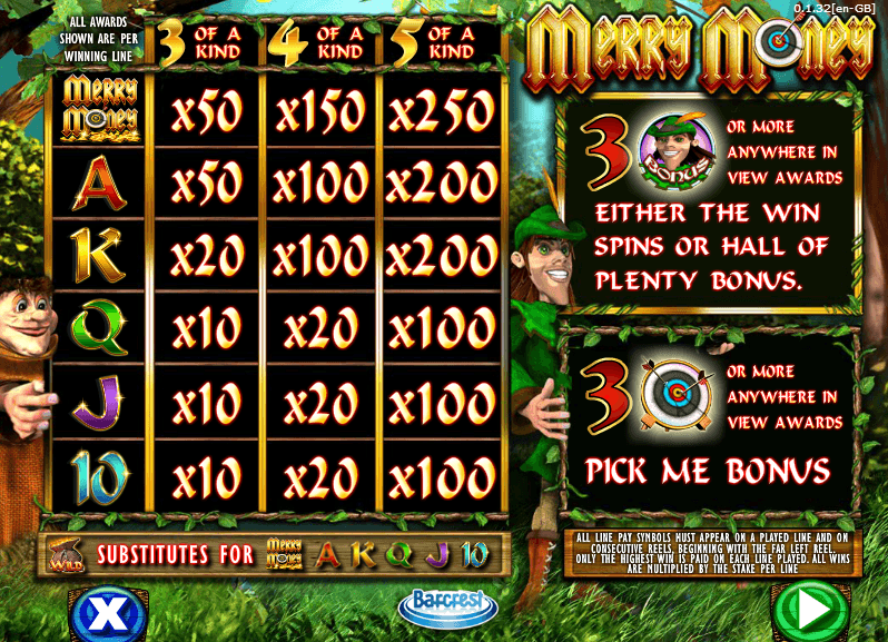 Merry Money slot is an engaging adaptation of the well-known legend, and the set of symbols does not distract from the main character. The number of bonus features also ensures that the player doesn’t get bored. Generous cash rewards in the Hall of Plenty and the Pick Me Bonus may result in high wins.