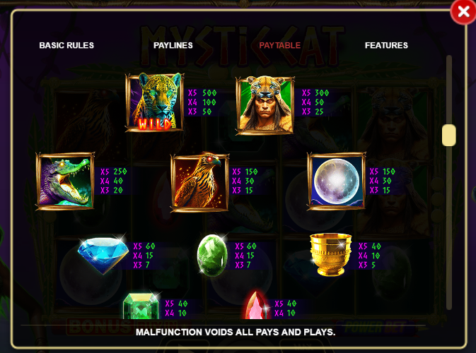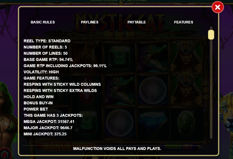 Given the name of the game, you might expect to see cute cats roaming about on the grid on a sunny day, but Arrow’s Edge has a slightly different scenario prepared for you in the Mystic Cat slot. You are transferred into the jungle packed with hidden treasures, brave warriors, jaguars, and plenty of exciting adventures. This action-packed plot combined with several beneficial features results in a fascinating gambling experience. Furthermore, the most fortunate players have a chance to return home with the maximum reward of $487,200!Mystic Cat Slot Machine Review [Up to 6 Respins in Base Mode]