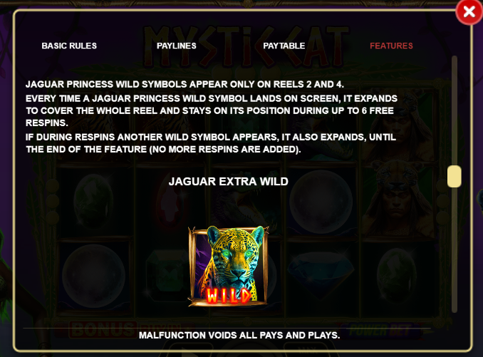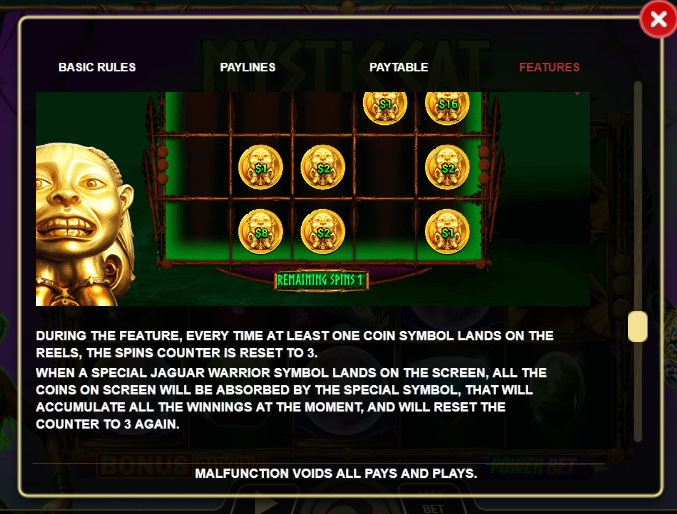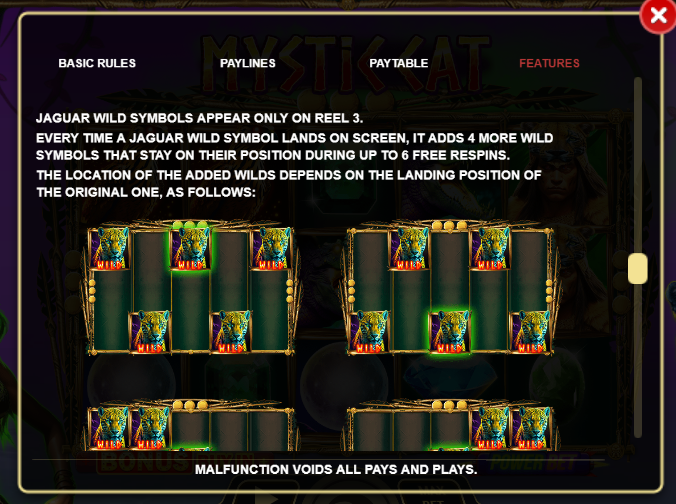 Wild Jaguar also activates up to 6 respins. It occurs when this mystic cat lands on the central reels. It will also add 4 extra Wilds to the grid before respins begin.