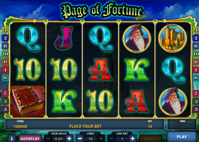 The charming Page of Fortune Deluxe comes with ten selectable paylines, five reels, and three rows. The minimal bet in the game is one coin per line. The maximum bet in the game is 30 coins per line.