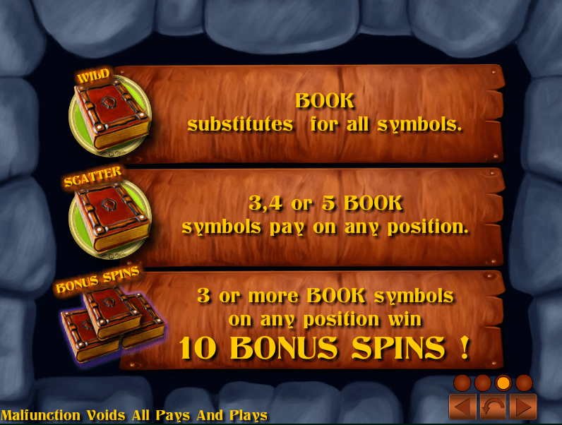 - The game’s Wild symbol is represented by a Magic Book and it can be substituted for any regular icon to create winning paylines and also doubles as the scatter symbol too, meaning that if you find three or more anywhere across the five reels, you will trigger a Bonus Feature. Moreover, if there are five Scatters on the screen, you will get 2,000x multiplier. If you manage to collect four or three identical characters, you will be awarded 200x and 20x your wager respectively.