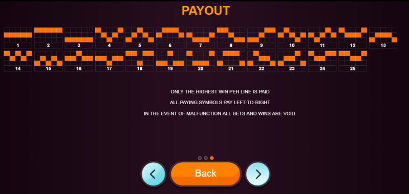 Three rows and five reels is the configuration of the grid here. Twenty-five win lines are fixed across the layout. Reel spinning starts at a price as low as 0.25 cents, and reaches 25 credits per spin. This is not a big amount, and we assume the slot to be more interesting for low rollers.