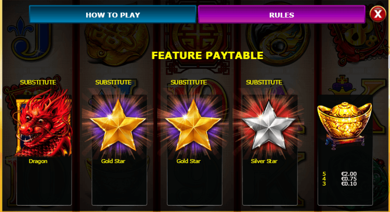 10 Free spins where the Coin icon wins with the golden Star substituting get a 2x multiplier. The Ying-Yang, the Ornament, and Trinket on reels two, three and four will transform into those stars.