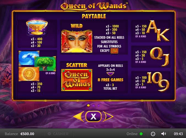 The queen has prepared an entertaining bonus round to everybody who can land three Scatters on the second, third, and fourth reels. Players gain 8 extra spins with Stacked Wilds and a possibility to re-trigger the bonus during free spins mode.
