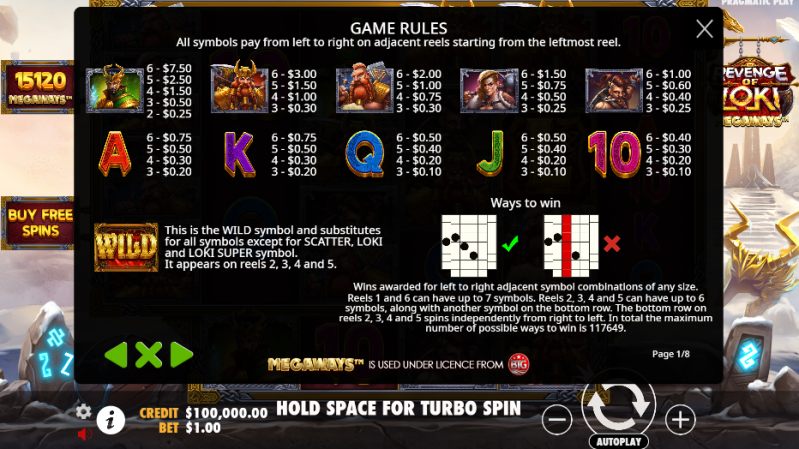 To claim victory in "Revenge of Loki Megaways," align three matching symbols across four contiguous reels, where each spin holds the promise of untold riches and ancient treasures. With 13 symbols gracing the reels, each bearing its own multiplier value, the path to prosperity lies in the hands of fate.
