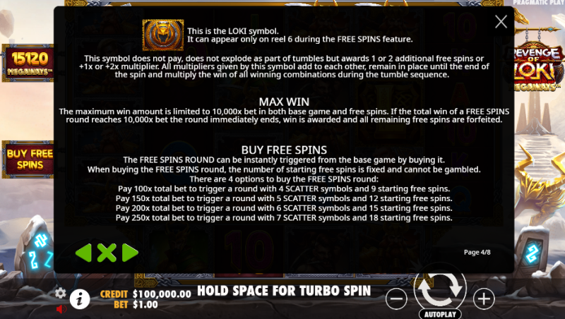 - Special Symbols: Beware the cunning Loki, whose presence heralds both fortune and folly. The Wild Symbol, Scatter Symbol, Loki Super Symbol, and Loki Symbol each play a pivotal role in shaping your destiny, offering opportunities for both glory and ruin.
