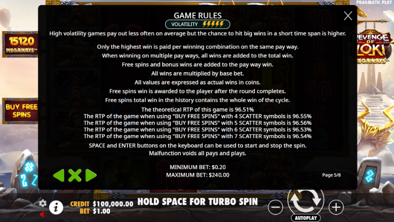 - Broad Betting Possibilities: From mere pittance to princely sums, the game welcomes all who dare to test their fate, with wagers ranging from $0.20 to a staggering $240 per spin. Whether you tread lightly or wager boldly, the halls of Valhalla await your triumph or defeat.