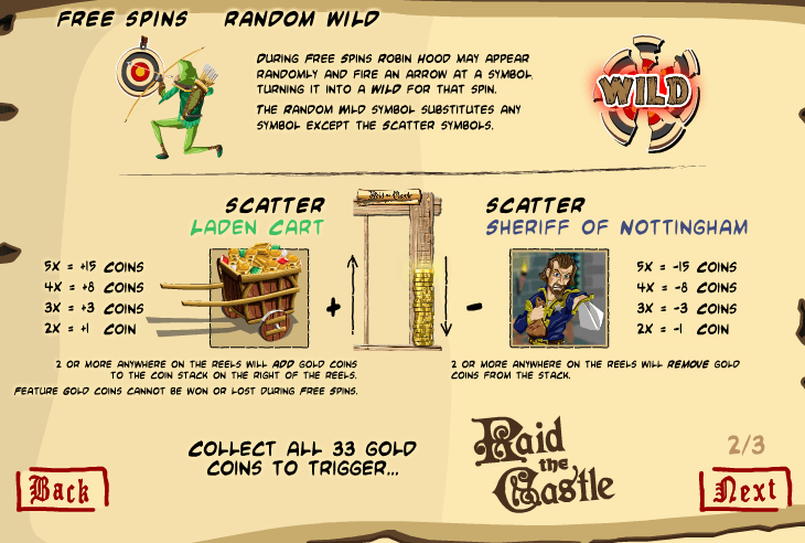 As Robin of Sherwood slot machine offers a thematic prize round, it is the reason #4 to try it out. To make the very most of what you could win, keep an eye out for the special Raid the Castle bonus feature. Here you will be creeping through John’s castle trying to grab as much as you can without leaving empty-handed. Starting in the taxation tent you might be able to make it all the way to the throne room if you are lucky! But if you hit the “collect” option at any time, your prizes will be safe – but the bonus feature will also end. How far will you dare to venture?