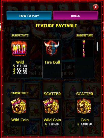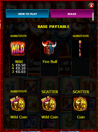 The game has two main bonus games. Thus, Free Spins are triggered by landing three or more Scatters anywhere on the screen. The reels will expand to feature nine of them. The Fire Bull and the Coin Scatters only appear on the top three rows of each reel but landing three more Scatters will award five more rounds.