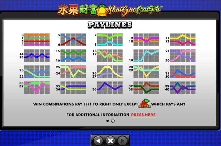 The style of Shui Guo Gai Fu is retro and emphasizes the nature of this slot. Here players are presented the gods of wealth, and fertility. There are 5 reels, and 40 paylines, where you can earn decent rewards. Are you intrigued? Continue reading our full review below to learn everything about this classic reeled machine.