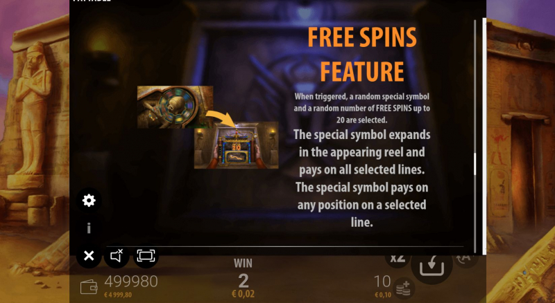 A set of Scatters unlocks a random number of free spins, up to twenty, and the session can be retriggered for an unlimited amount of times within the bonus. The Scatter lands only on the first, fifth and ninth reels. Any symbol will be picked as a random specialty, and it will expand once landing on the grid.