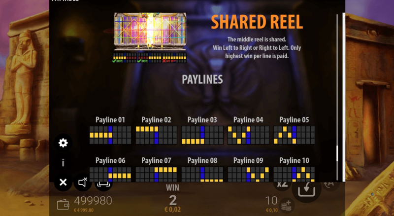 The middle reel is a shared one. Payouts are bestowed from left to right, and from right to left.
