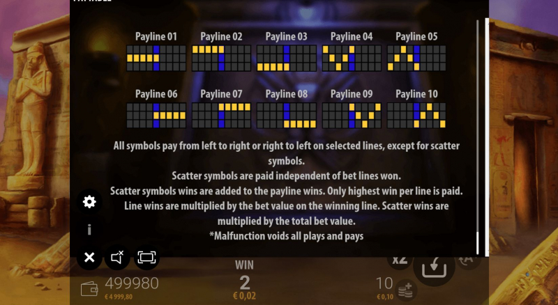 There are nine reels and three rows with ten fixed win lines fixed across. There are up to thirty bet levels per a spin, and a line can hold a stake as small as 0.01 cent. Therefore, a cost of the rotation starts at 0.10 cents, and reaches 300 credits.