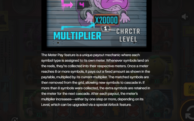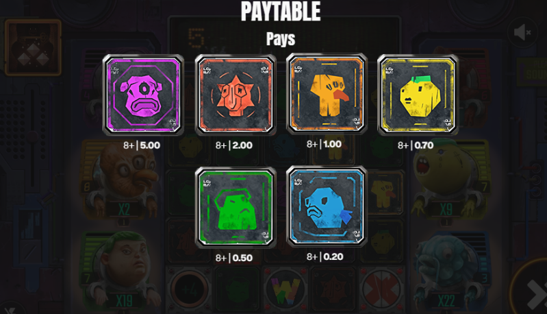 The paytable is based on symbol clusters, and as more of the same symbol lands, your winnings increase accordingly. Six-of-a-kind might earn you 0.4x–2x your stake, while massive 20+ clusters dish out 2x–20x.