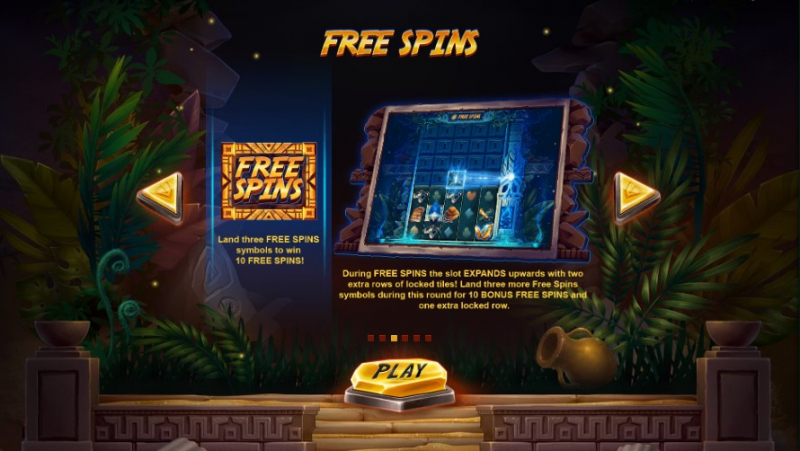 This reeled adventure is bursting with bonuses! For starters, any time a Totem Crystal appears on the grid, it sends a special Feature Beam to the accumulator and the beam hits the grid to either unlock any positions of the upper row, thus exposing additional ways to win, or to convert regular icons into special ones. It can also add more Totem Crystals to the grid.