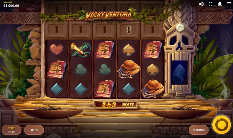The story takes us to the ruins of an ancient temple. Where is it situated? Nobody knows. Who built it? This remains a mystery. But smart archaeologist and researcher Vicky Ventura knows that if certain crystals land together, some secret walls may be moved and ancient mysteries will be revealed. Follow this courageous girl on her mission, and collect some decent rewards. The paytable is home to a compass, maps, binoculars, hats, notebooks and card suits. Vivid animation, as well as quality sound and music effects apply.